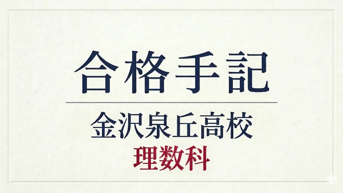 合格手記 泉丘高校理数科合格 兼六中学校卒業